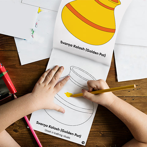 My God's World Shri Jagannath by Sakhyam is more than just a colouring book; it's an invitation to explore the rich cultural heritage of Hinduism. This 48-page copy colouring book beautifully combines creativity and learning, offering children an opportunity to engage with the stories and significance of Shri Jagannath, the revered deity of Puri. Each page is carefully designed to teach children about the key symbols, items, and elements related to Shri Jagannath in an easy-to-understand format. Crafted with premium-quality paper, this book is perfect for young minds eager to learn while expressing their creativity. The book is part of Sakhyam’s commitment to helping children connect with their cultural roots, offering a fun, interactive, and meaningful experience. Ideal for children aged 3 and above, "My God's World Shri Jagannath" makes learning about Hindu traditions both joyful and inspiring.